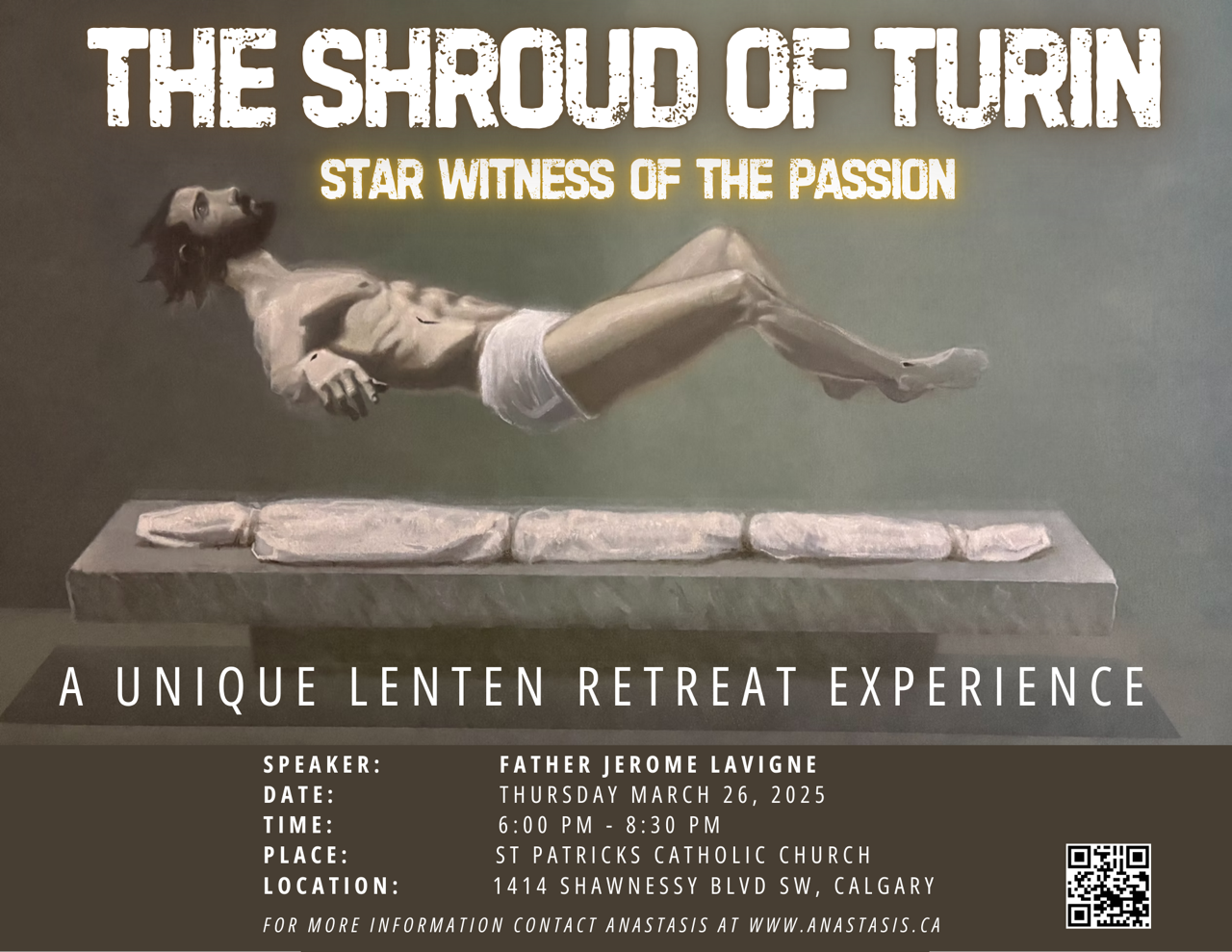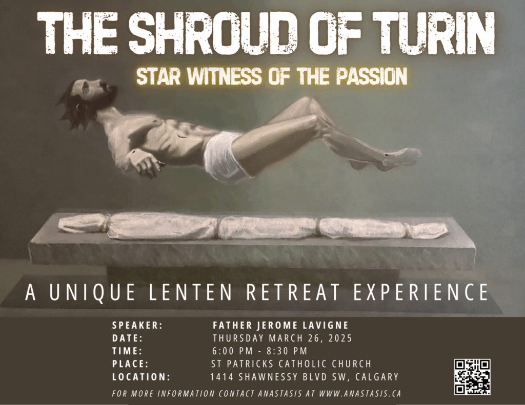 This evening is a unique Lenten retreat experience – not a replay of the Shroud talks you may have heard before. We will approach the Shroud of Turin as the star witness of the Resurrection, lingering reverently at the price of the Passion and then turning toward the moment when the light of the Resurrection breaks into the darkness. We will contemplate what that light means not only for then, but for now: how the Risen Christ still draws near, still speaks, still heals, and still invites us into communion. This is meant to awaken wonder, stir holy curiosity, and kindle Real hope. The night will culminate in a Living Encounter with Christ in the Real Presence through Eucharistic Adoration and Benediction – a quiet, awe-filled space to come to the feet of Jesus and respond.